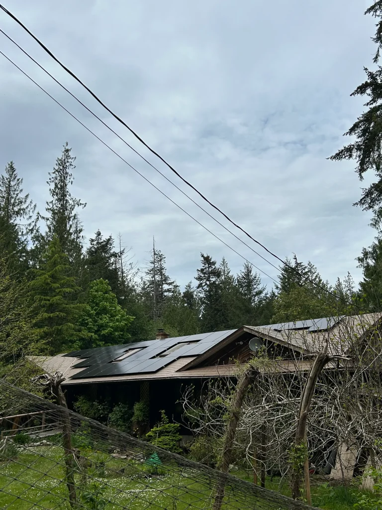 With an powerful 13.5 kW capacity, the system utilizes top-tier solar panels and advanced inverters to ensure maximum energy efficiency and long-term reliability. The installation is strategically positioned to take full advantage of Hornby Island’s abundant sunlight, with optimal panel placement that ensures high energy production throughout the year, even during the cloudy winter months.